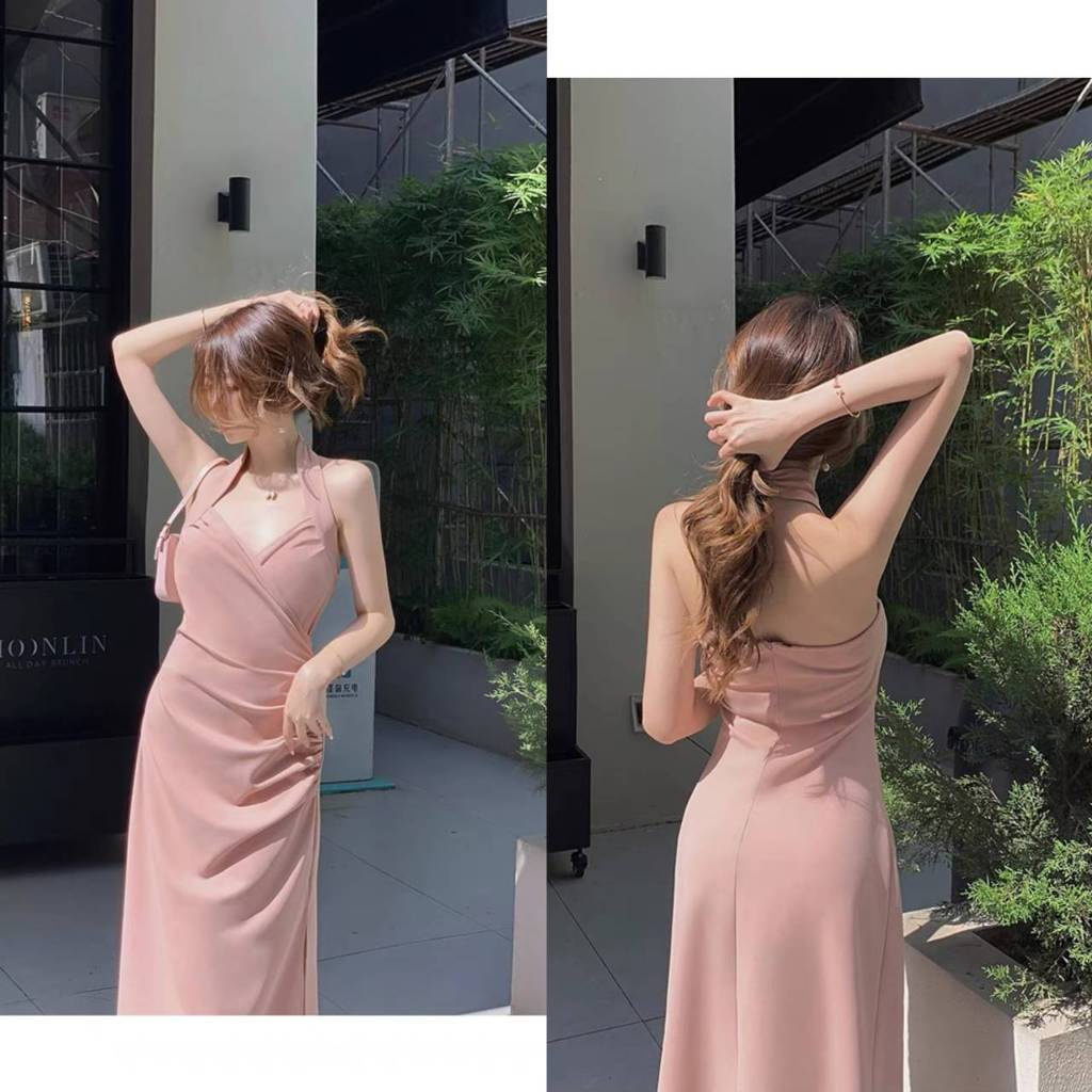 korean pastel pink dress for woman casual sexy backless dress plus size slit formal dress elegant xl Shopee Malaysia Very well made.
