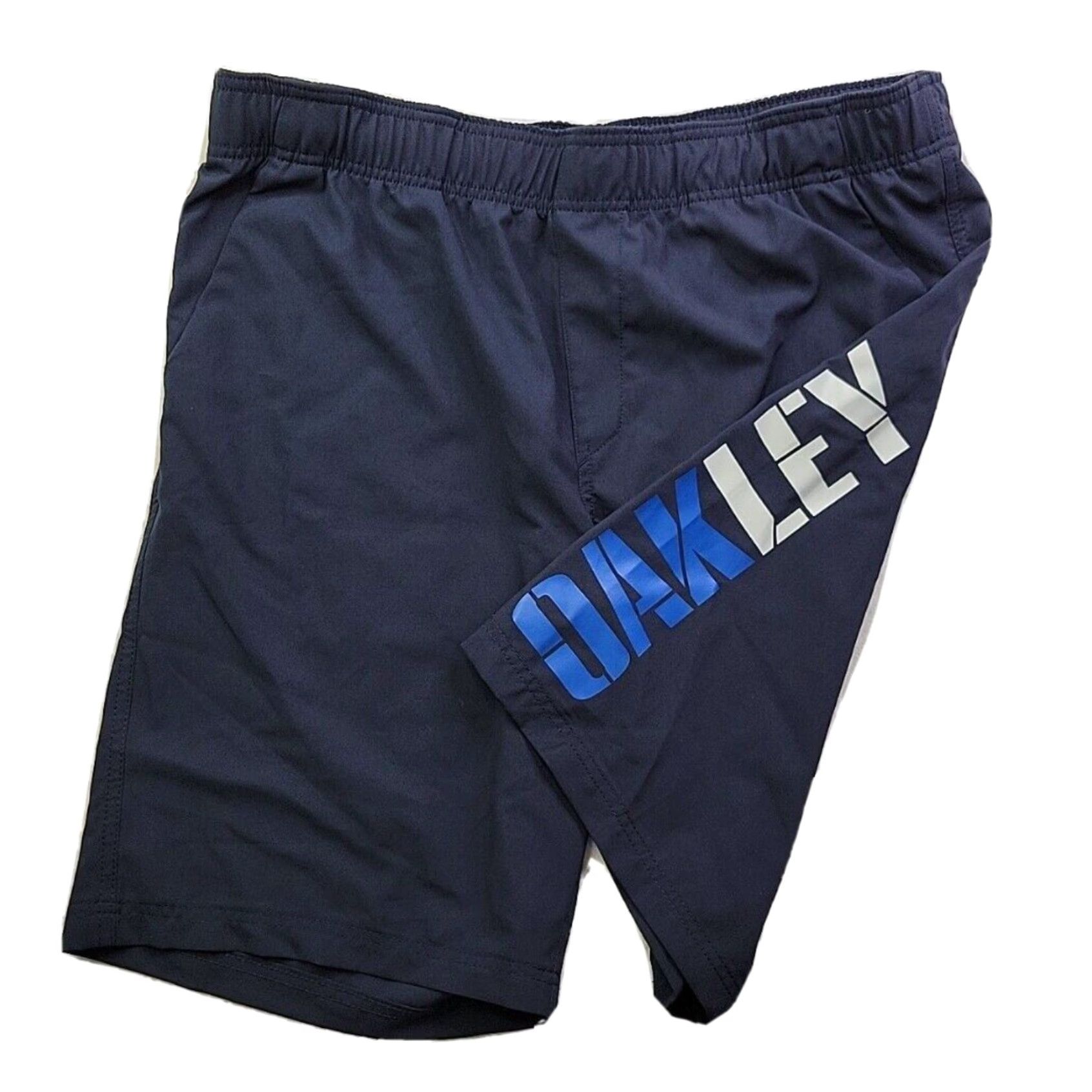 Oakley Navy Blue Athletic Shorts for Men with Elastic Waist and Slash Pockets Featuring Oakley Logo Grailed Very well made.