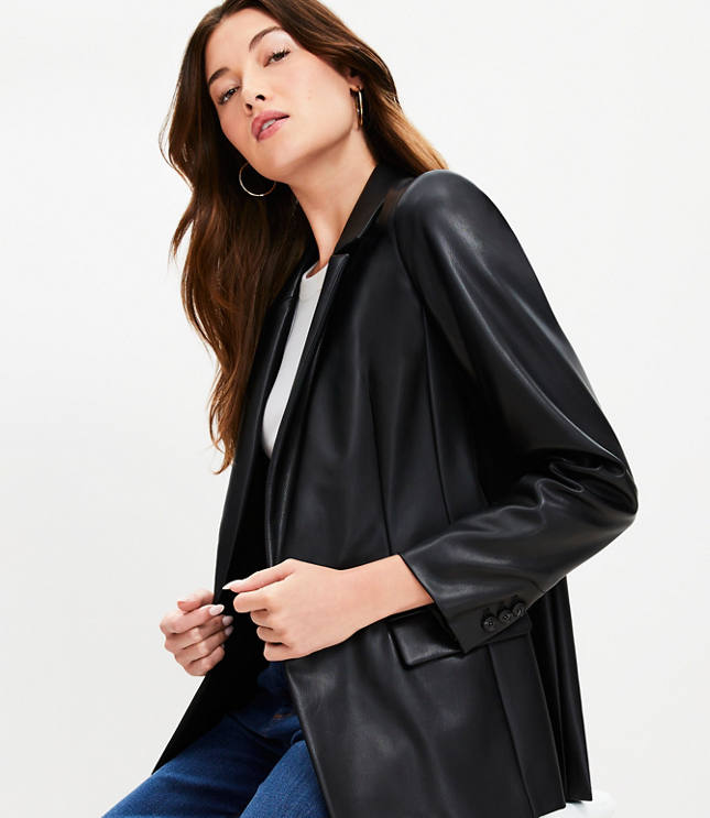 Petite Faux Leather Relaxed Blazer Very well made.