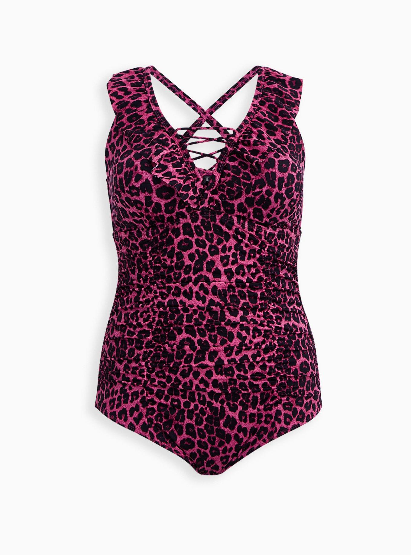 Plus Size Pink Leopard Ruffle Trim One Piece Swimsuit Torrid Very well made.