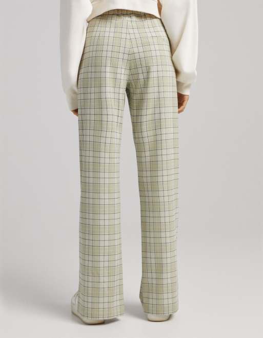 Bershka straight leg pants in green check Very well made.