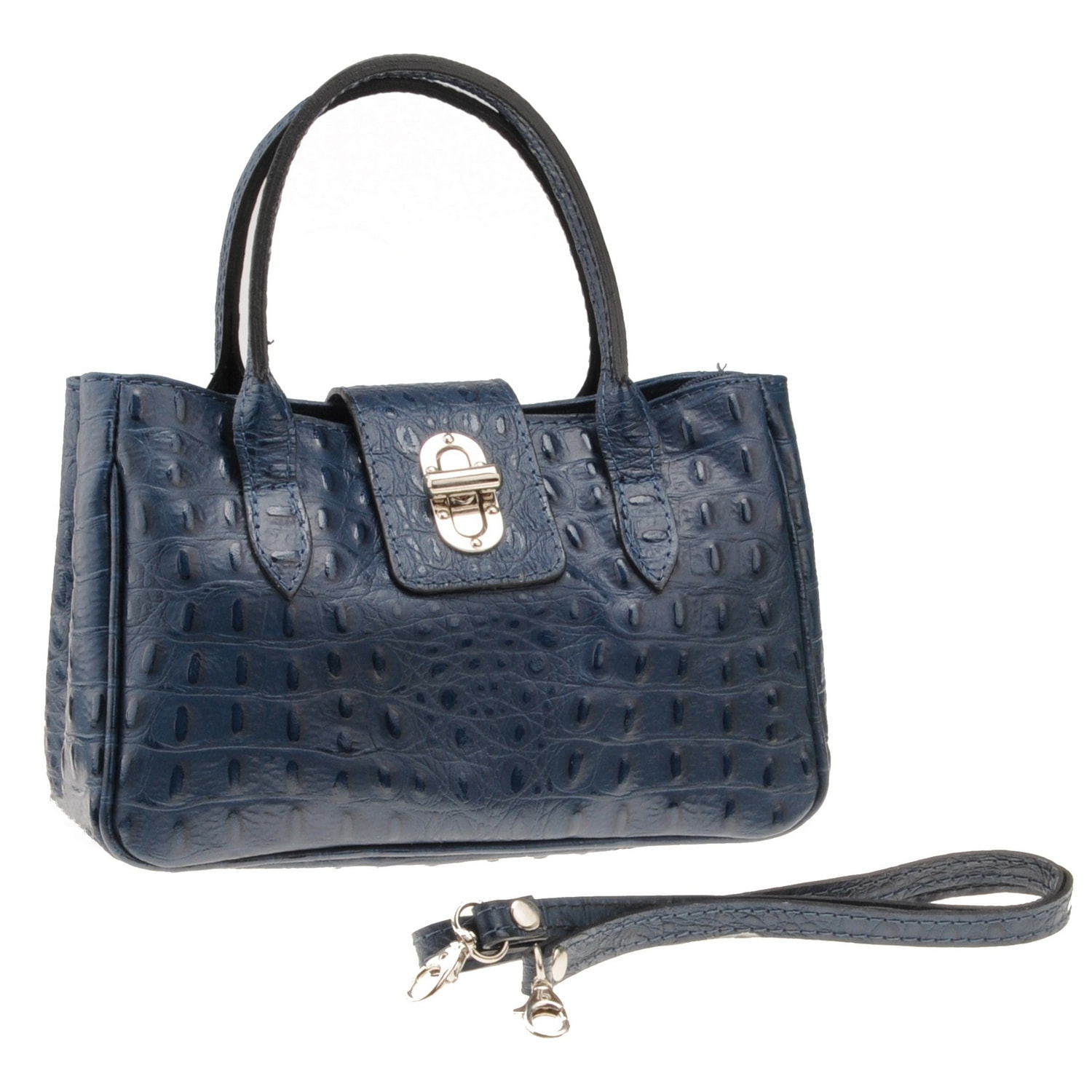 Borse Donna colore Blu in pelle Made in Italy 17x26x12 cmcm Very well made.