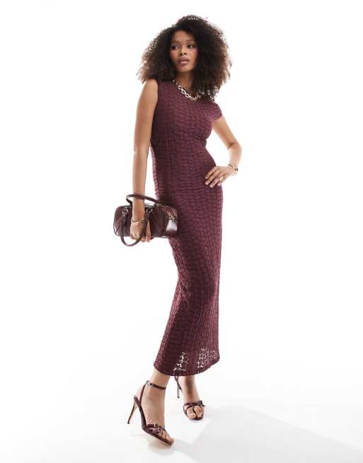 Pull Bear Vestito lungo testurizzato in pizzo bordeaux senza maniche ASOS Very well made.