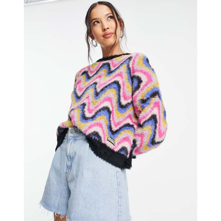 The Ragged Priest fluffy knitted jumper in rainbow wave ASOS Very well made.