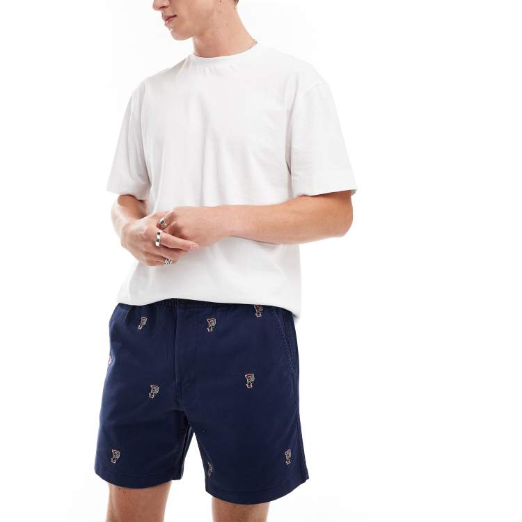 Polo Ralph Lauren Prepsters all over retro sports logo print flat front twill chino shorts in navy ASOS Very well made.