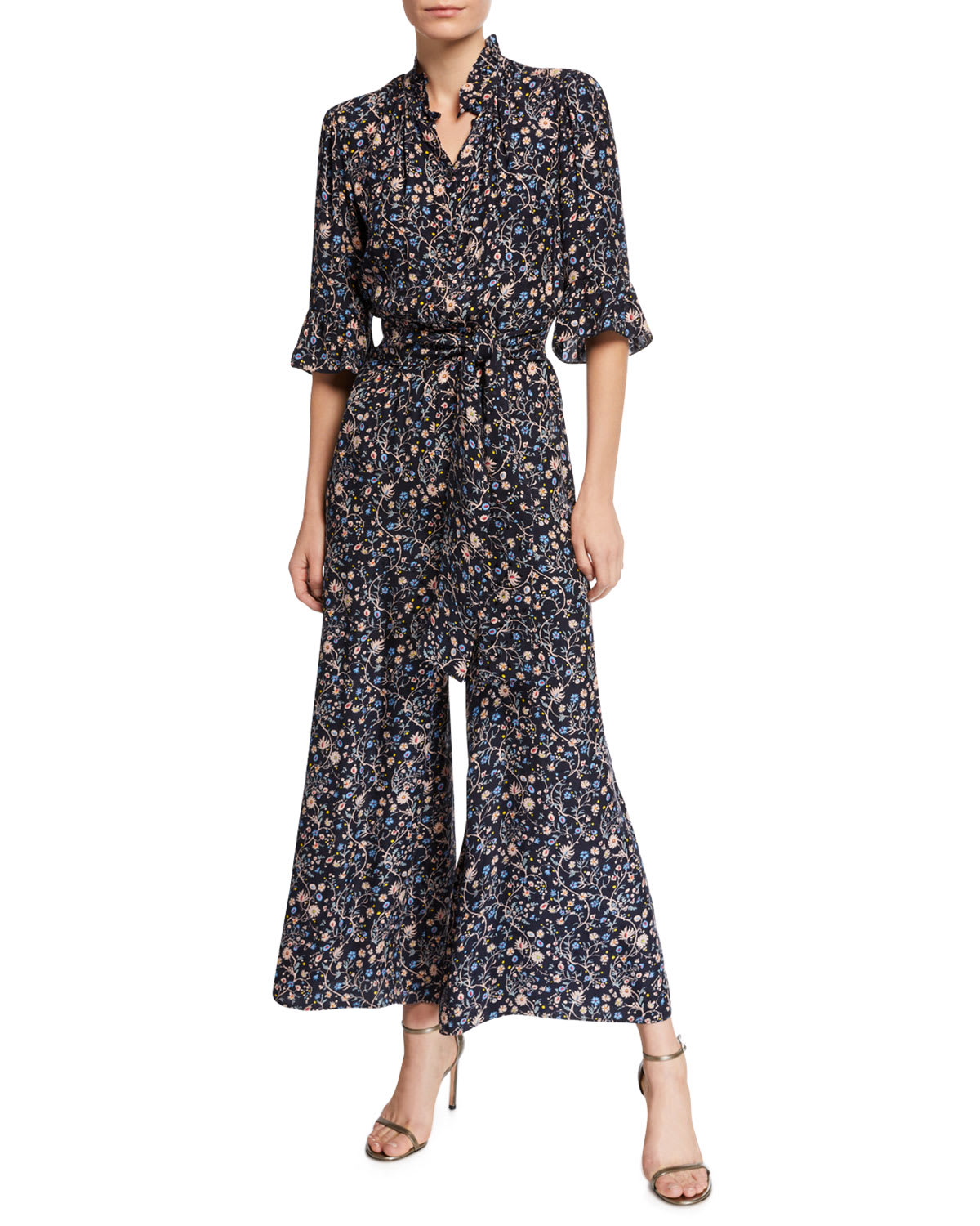 Rebecca Taylor Vivianna Long Sleeve Floral Print Silk Jumpsuit Very well made.