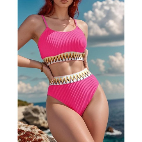 Dometour Women s High Waisted Swimsuit Two Piece Ribbed Bikini Sets Cheeky Bathing Suits Hot Red l Target Very well made.