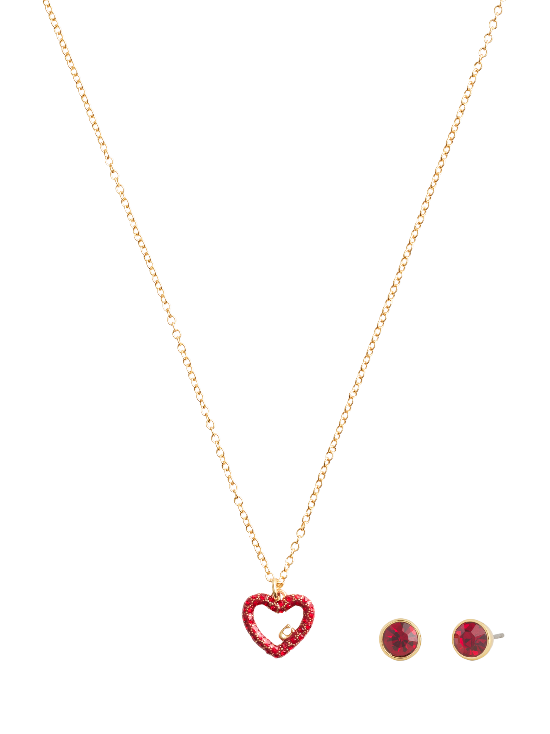 Coach Pave Heart Pendant Chain Necklace and Earrings Jewellery Set Gold Red Very well made.