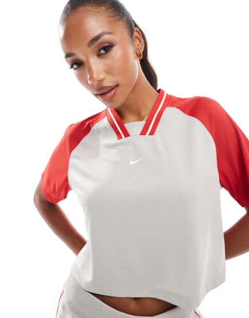 Nike Trend short sleeve crop football shirt in light grey and red Very well made.
