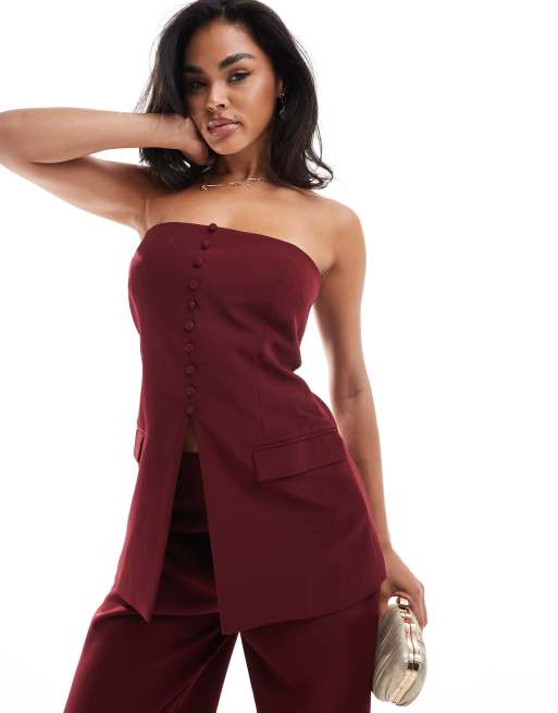 Finding Friday Tailored strapless longline top in burgundy Very well made.