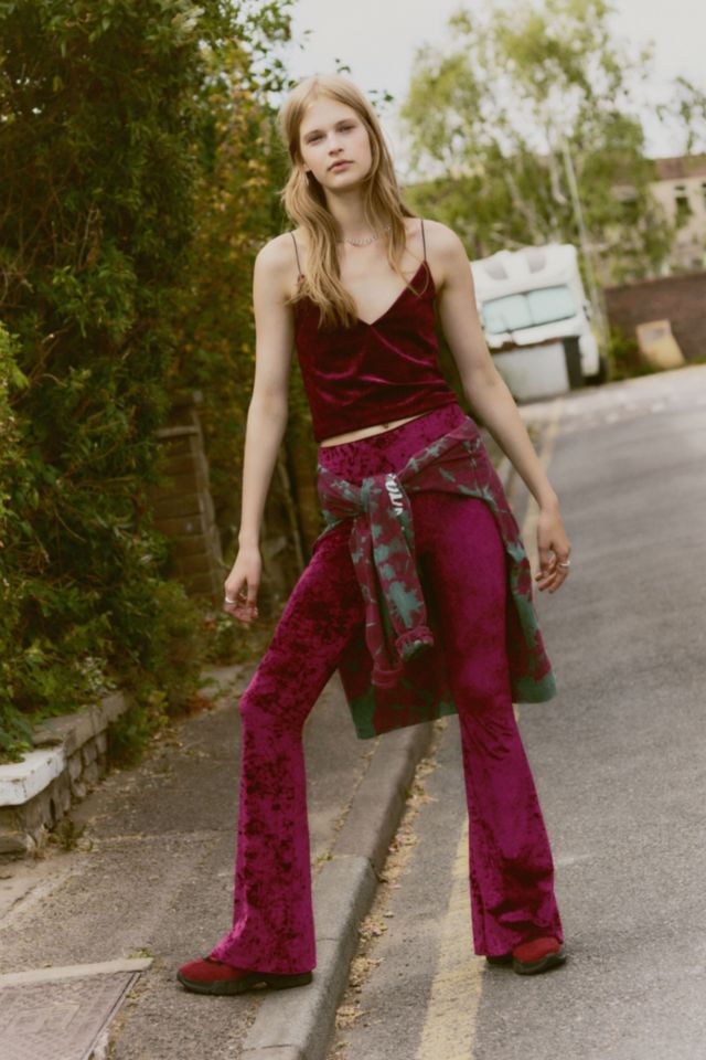 Free People Slim Pull on Velvet Flare Pants in Red Lyst UK Very well made.