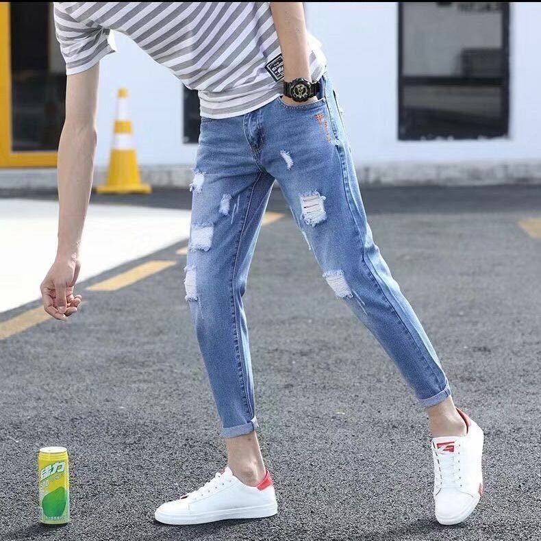 Jeans Pant Men Ripped Capris Korean Fashion Men s Slim Casual Pants Shopee Malaysia Very well made.