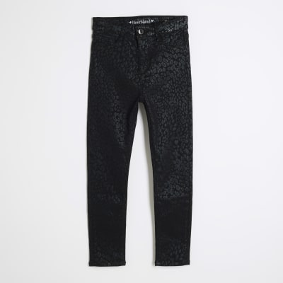 Girls Black Skinny Fit Leopard Coated Jeans River Island Very well made.