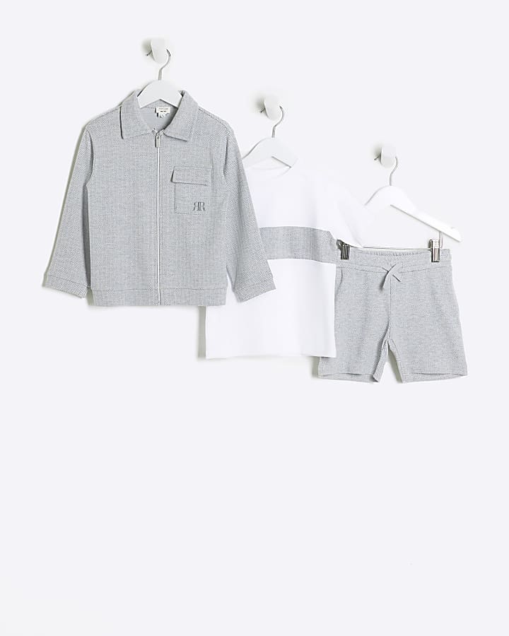 Mini Boys Grey Herringbone Shacket and shorts River Island Very well made.