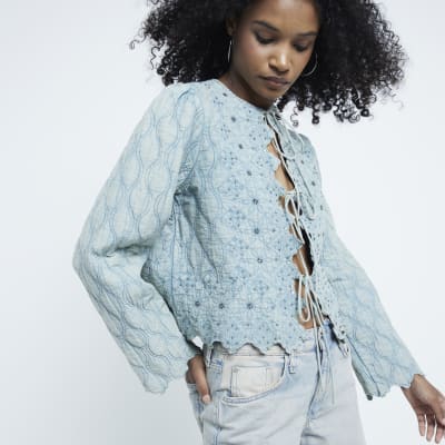 Blue sequin tie up quilted jacket River Island Very well made.
