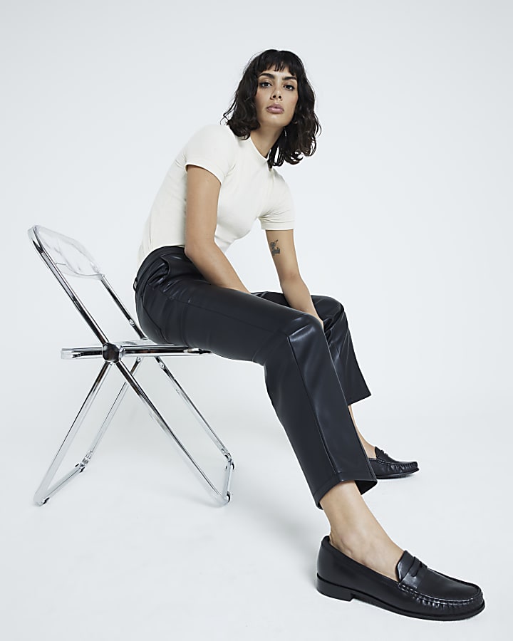 Black faux leather straight Trousers River Island Very well made.