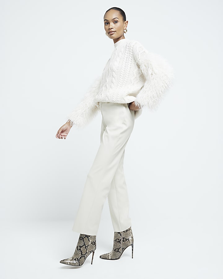 Stone Faux Leather Pull On Straight Trousers River Island Very well made.