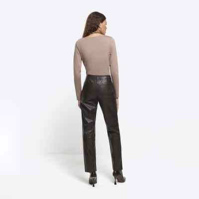 Brown faux leather straight trousers River Island Very well made.