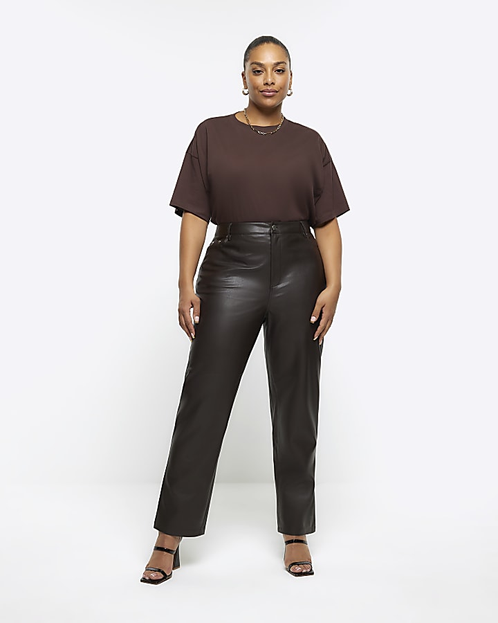 Plus brown faux leather straight trousers River Island Very well made.