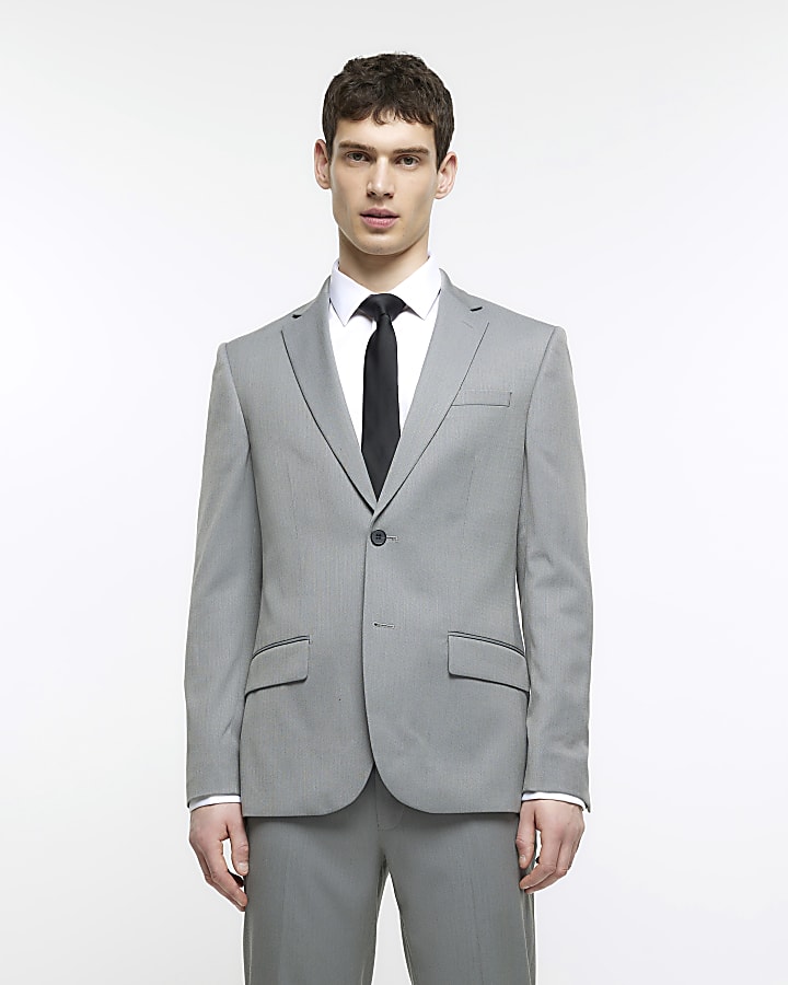 Grey skinny fit herringbone suit jacket River Island Very well made.