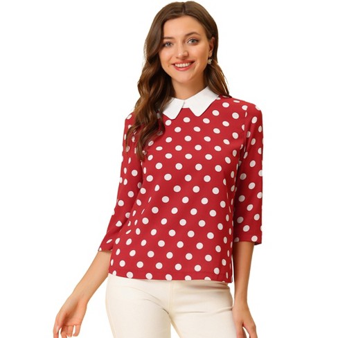 Allegra K Women s Polka Dots Contrast Peter Pan Collar Top 3 4 Sleeves Blouse Red White Medium Very well made.