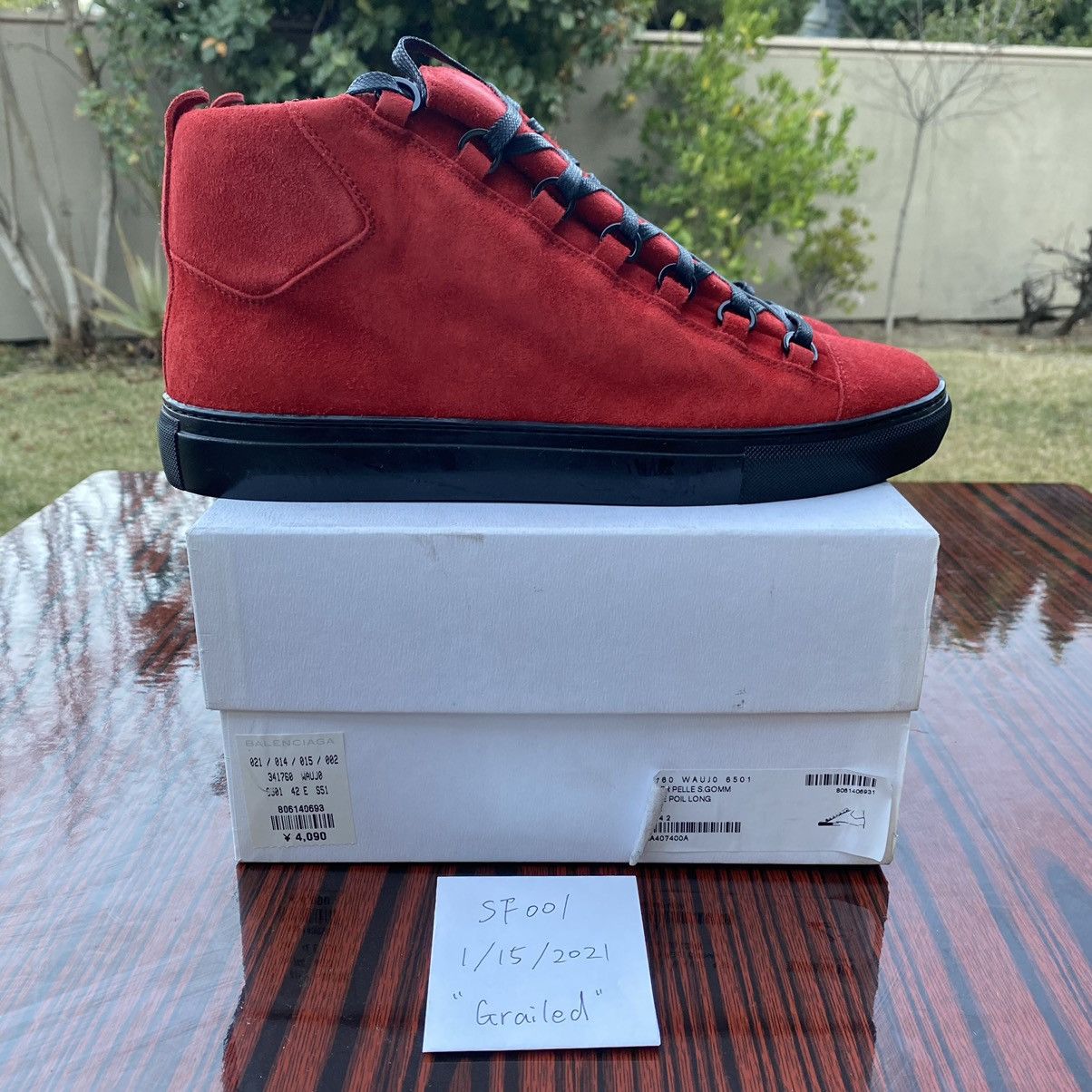 Red suede clearance balenciaga arena Very well made.