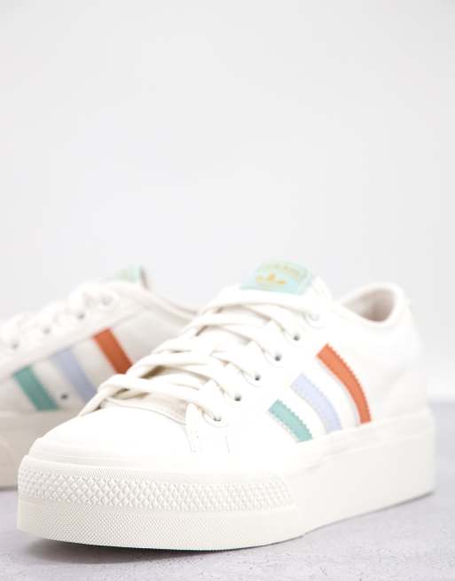 adidas Originals Nizza Platform sneakers in white with coloured three stripes Very well made.