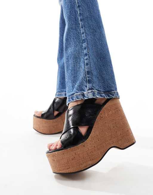 ASOS DESIGN Tamara cross strap wedges in black Very well made.