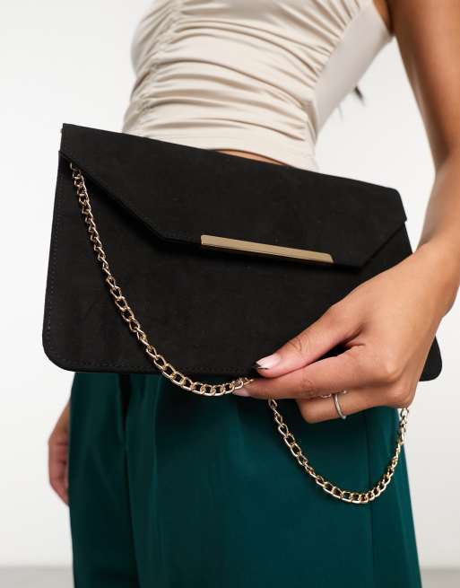ASOS DESIGN suedette chain bar clutch bag with detachable chain strap in black Very well made.