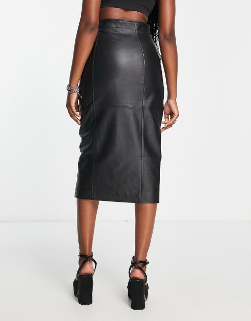 ASOS DESIGN Gonna midi in pelle sintetica nera con cintura e zip Very well made.