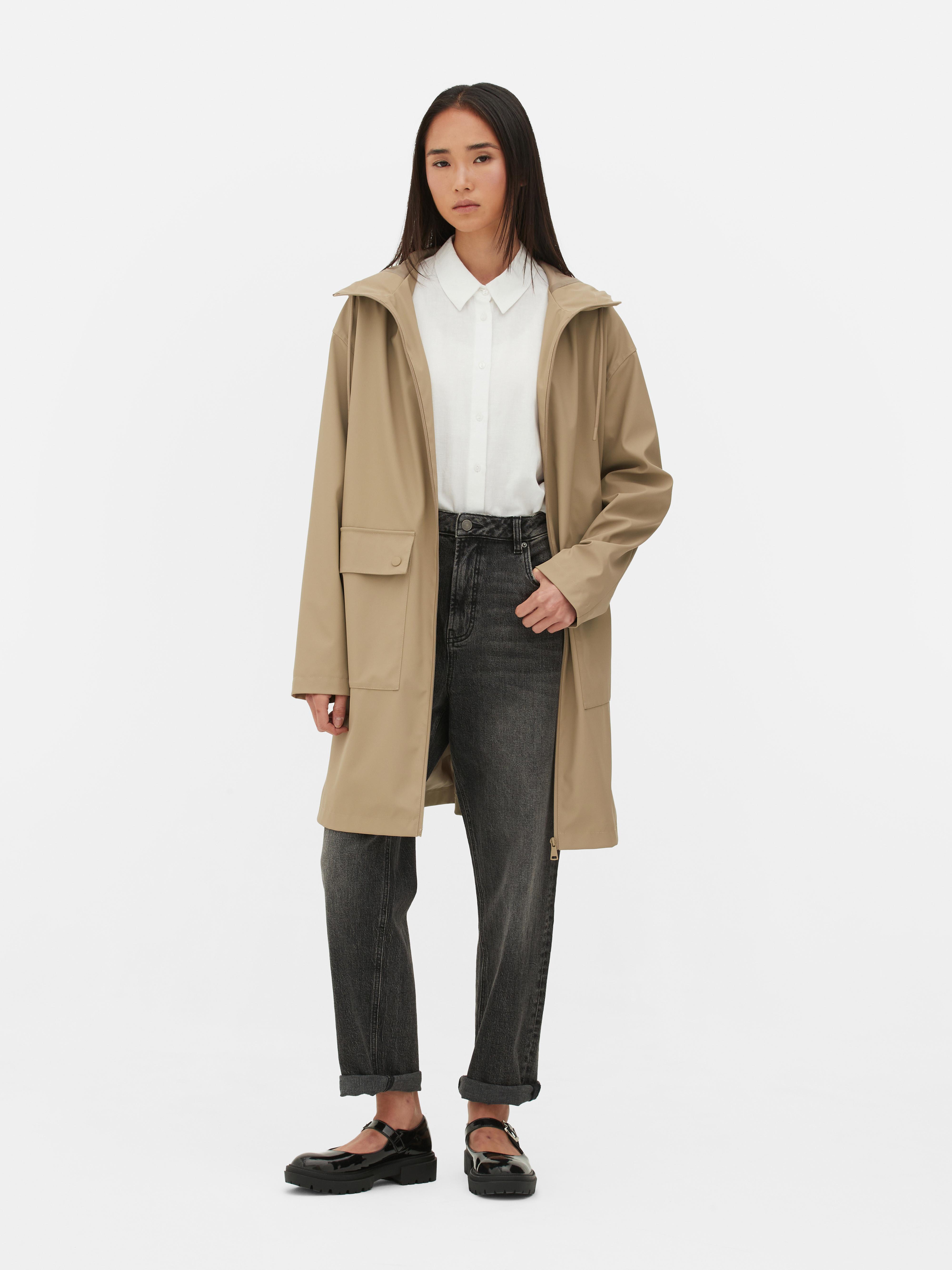 Women s Camel Rubberized Hooded Raincoat Primark Very well made.