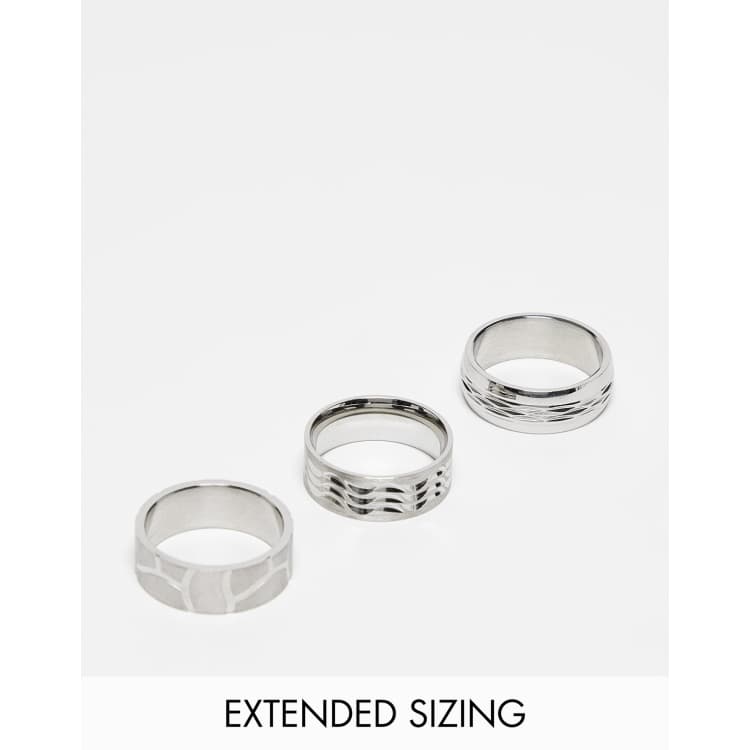 ASOS DESIGN 3 pack waterproof stainless steel band ring set with embossing in silver tone Very well made.