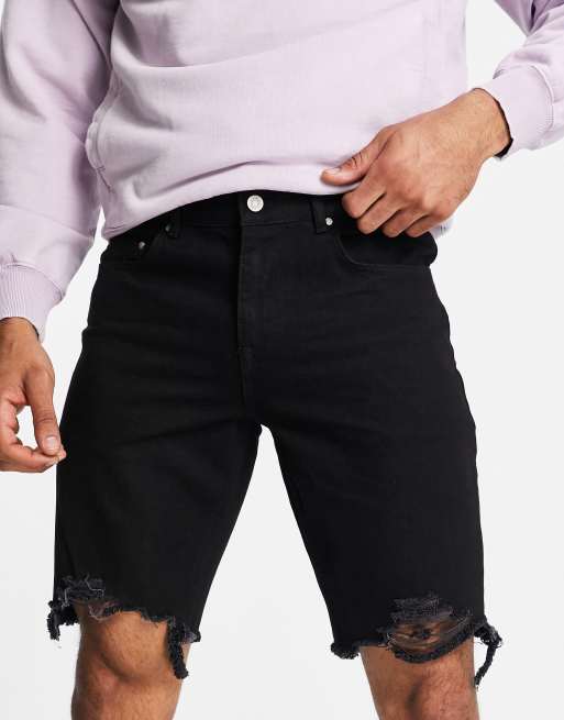 ASOS DESIGN slim regular length denim shorts in black with raw hem Very well made.