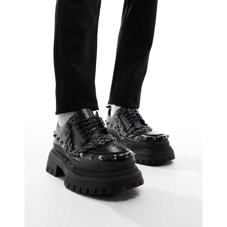 ASOS DESIGN chunky lace up shoes in black with silver hardware ASOS Very well made.