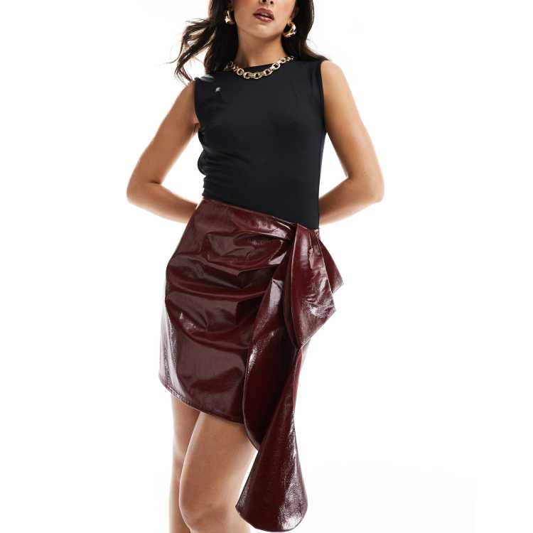 ASOS DESIGN ruffle high shine mini skirt in burgundy ASOS Very well made.
