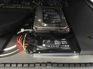 Upgrading a 27 inch iMac 5K to 14 terabytes Replacing the Fusion Drive with both a SSD and an harddisk Very well made.