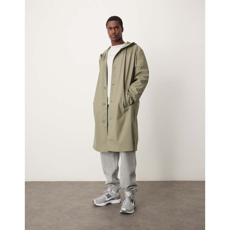 ASOS DESIGN rubberized trench coat with hood in khaki ASOS Very well made.