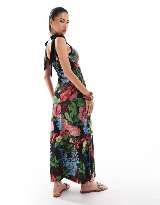 ASOS DESIGN bow tie strap midi dress In tapestry floral ASOS Very well made.
