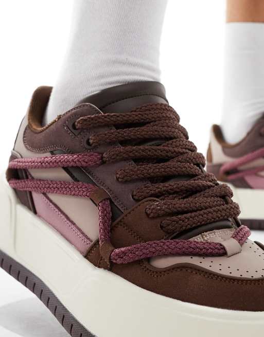ASOS DESIGN chunky trainers in brown mix with rope detail Very well made.