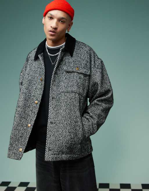 ASOS DESIGN oversized wool look worker jacket in gray ASOS Very well made.
