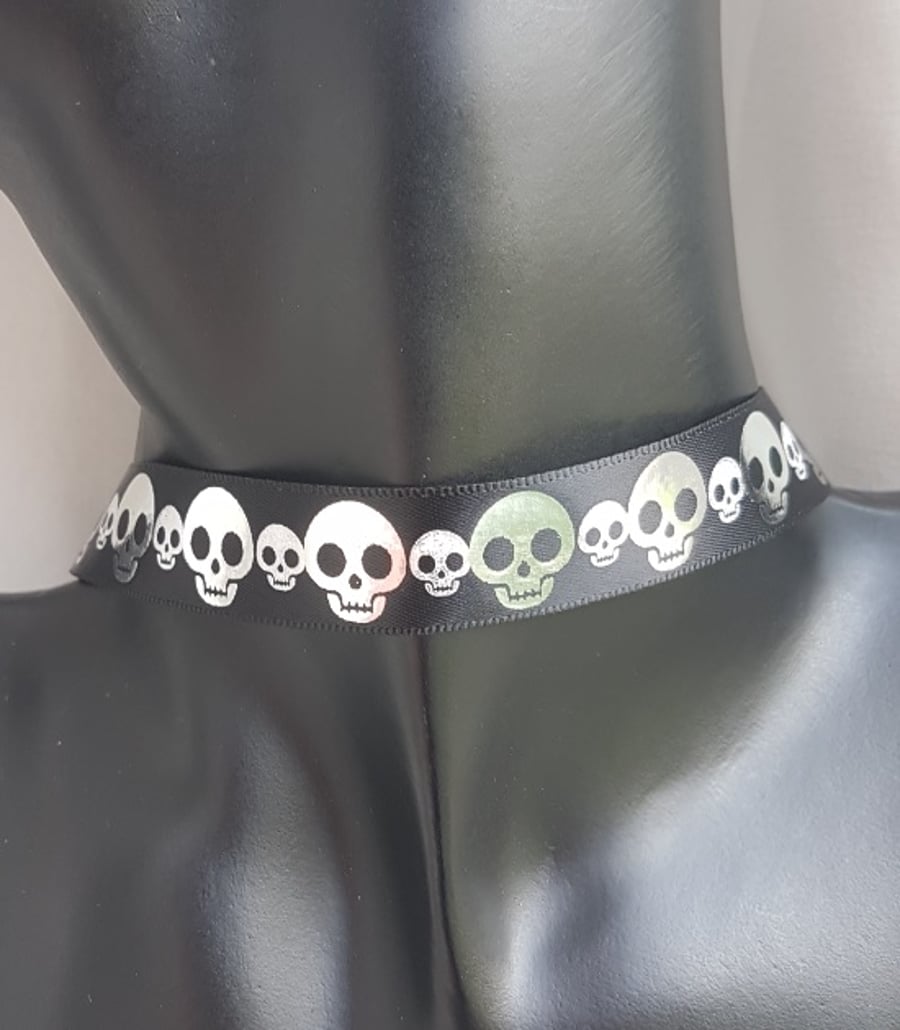 Gorgeous Skull Ribbon Choker Necklace 14 inch Folksy Very well made.