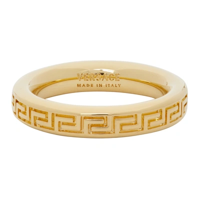 Shop Versace Gold Thin Engraved Greek Key Ring In D00o Gold Very well made.