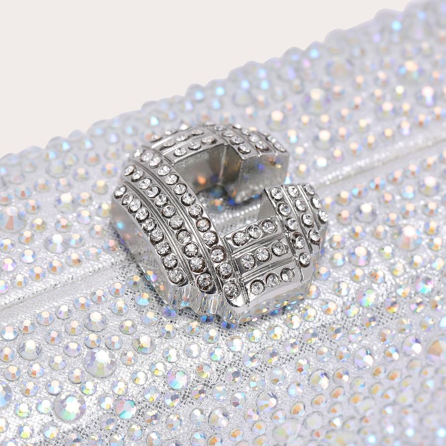 Unique Clasp Silver Diamante Crystal Diamond Evening bag Clutch Purse Party Bridal Prom Amazon Fashion Very well made.