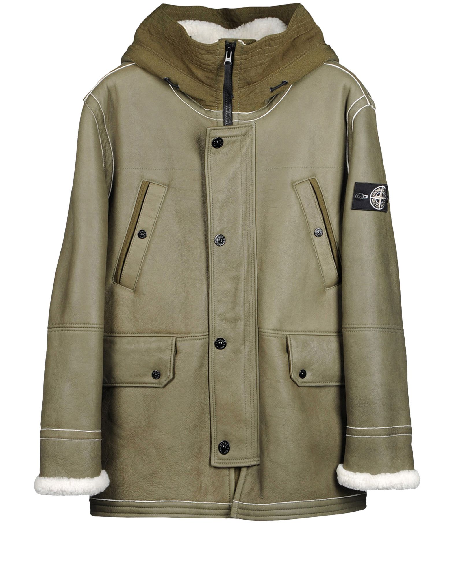 Stone Island logo patch sheepskin hooded jacket Eraldo FR Very well made.
