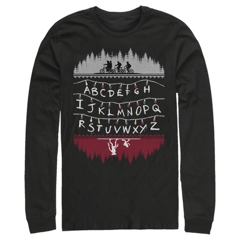 Men s Stranger Things Alphabet Lights Long Sleeve Shirt Target Very well made.