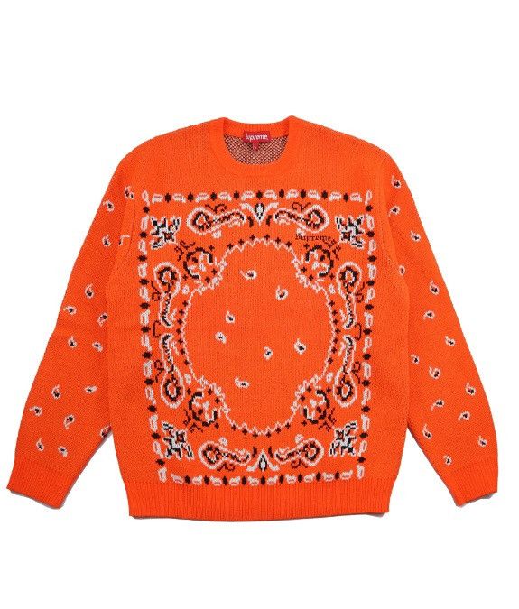 Supreme Supreme Bandana Sweater. Safety Orange Grailed Very well made.