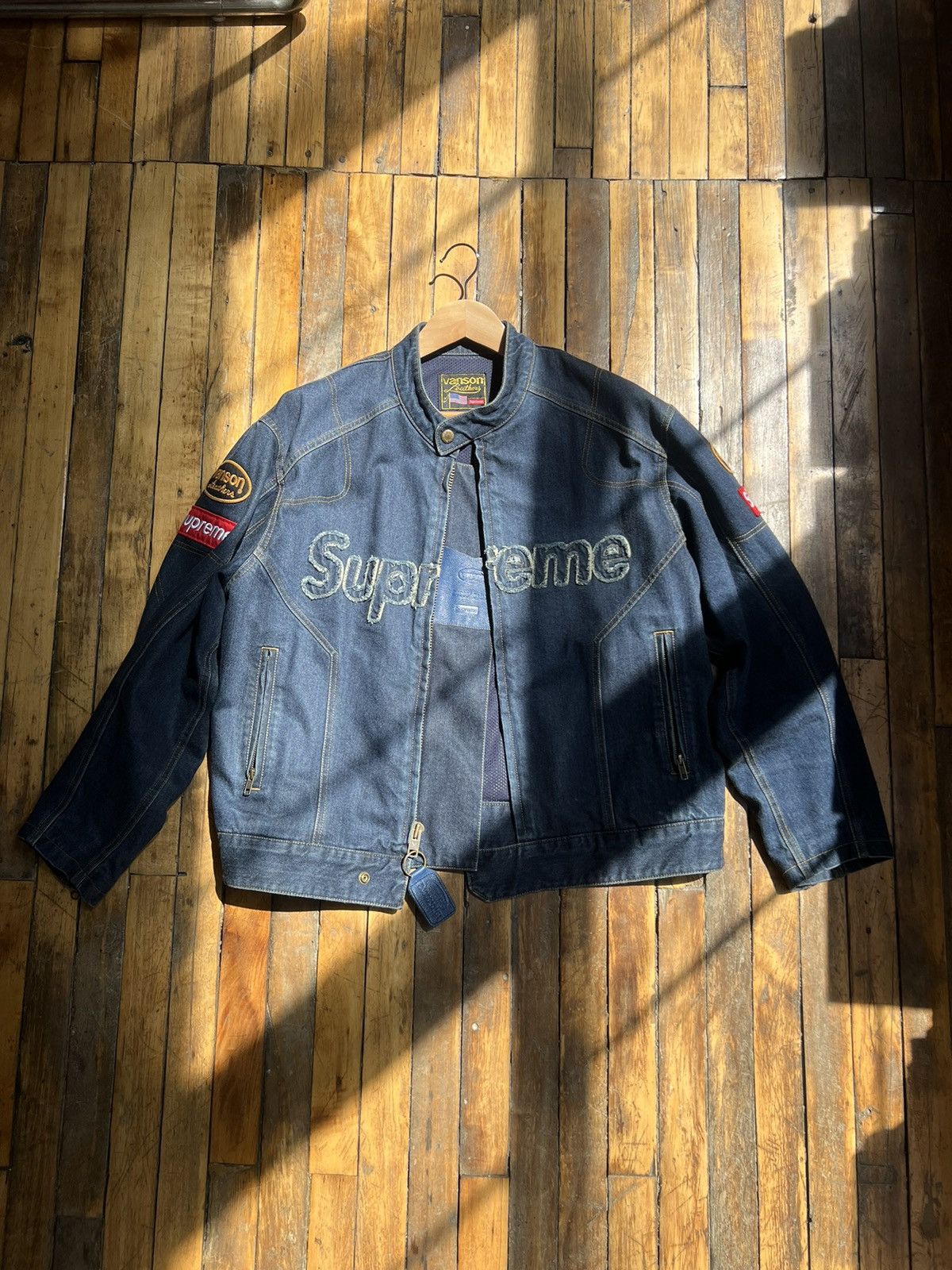 Vanson X Supreme Leather Jacket supreme Vanson VansonLeathers Moto collaboration mensfashion streetwear streetfashion leatherjacket nycfashion Very well made.