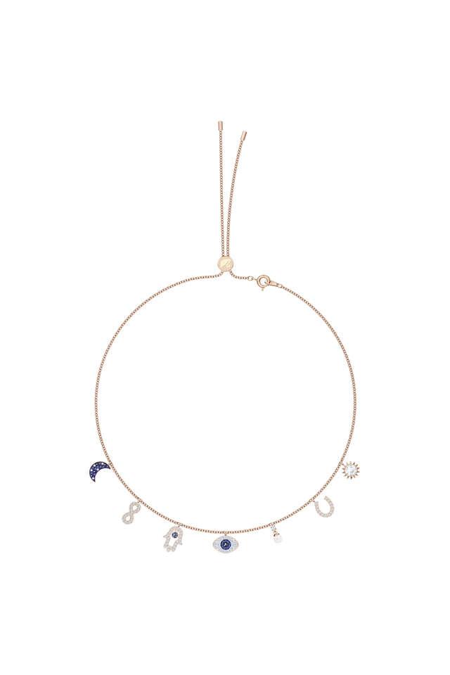 Buy SWAROVSKI Symbolic Necklace Moon Infinity Hand Evil Eye And Horseshoe Blue Rose Gold Tone Plated Shoppers Stop Very well made.