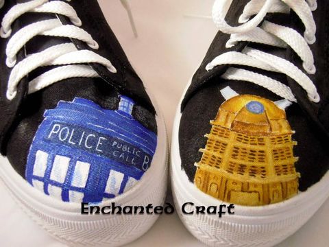 hand painted Doctor Who shoes with Tardis Dalek one of a kind Enchanted Craft Very well made.