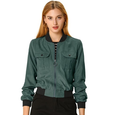 Inspire Chic Women s Stand Collar Zip Up Flap Pocket Bomber Jacket Green X large Target Very well made.